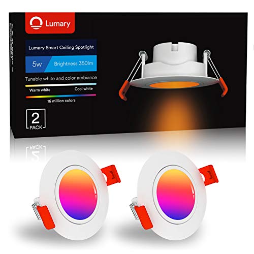 Faretti Incasso Cartongesso WiFi 5W -Lumary Faretti da Incasso Musica Faretti LED Girevole Faretti da Incasso APP Controllo Multi Colore Dimmerabile,Pertain Alexa Google Home-2PCS