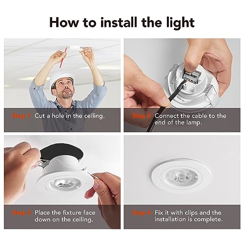 【Motivo consigliato】 Materiale plastico di alta qualità con buona dissipazione del calore, sicuro e mai arrugginito. Dimensioni del faretto da incasso: Esterno: Ø82mm / Profondità di installazione: 41mm / Intaglio del soffitto richiesto: Ø68-72mm, speriamo sempre che la più piccola apertura del soffitto possa ottenere il massimo e il miglior effetto della luce, cosa che continueremo a fare.