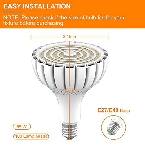 【Super Bright White E40 Lamp】 iodoo 65W faretto interno emette una luce luminosa e sfarfallio 6500K, può produrre luminosità fino a 8540LM e fornire un'esperienza luminosa di illuminazione. Il valore CRI di questa E40 è RA≥80 e la luce ha una buona capacità di percezione del colore e riflette il colore originale delle cose.Ideal per garage, magazzino, cantina, fienile, giardino, Ufficio, centro commerciale, supermercato, stazione ferroviaria, ristorante, hotel, laboratorio, area espositiva, ecc.