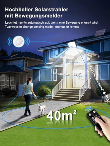 Illuminazione di alta qualità: Questa luce solare con sensore di movimento è dotata di 172 perline LED di alta qualità per fornirti un'illuminazione ultra luminosa. L'angolo di illuminazione delle luci solari è di circa 270° e la portata dell'illuminazione può raggiungere i 40 metri quadrati, ovvero il doppio di quella delle normali luci solari. Adatto per garage, porte d'ingresso, giardini, corridoi, scantinati, ricoveri per attrezzi, prati, cabine, gradini, balconi e altro ancora.