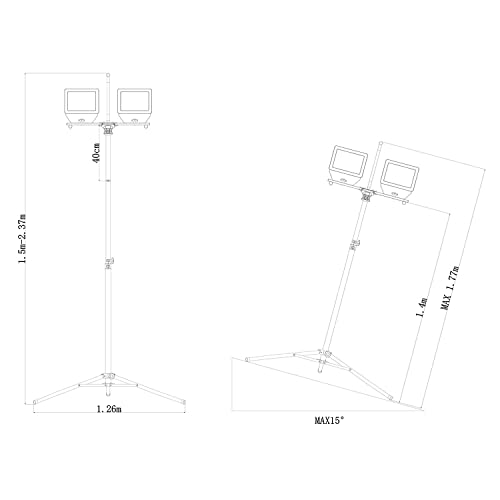 2 Faretti LED su Treppiede, 2 x 100W, 17.000 Lumen totali, Nero, Cavo 3m, IP65, 200cm di Altezza. Uso Esterno: Ideale per Cantiere, Garage, Giardino, Barbecue