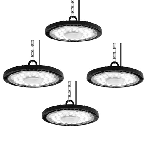 Faretto LED UFO 100W, 10000LM LED UFO Lampada, Illuminazione da Magazzino a LED Impermeabile IP65 6000-6500K con Bianco Freddo per Garage, Officina, Fabbrica, Corridoio(4pcs,100W)