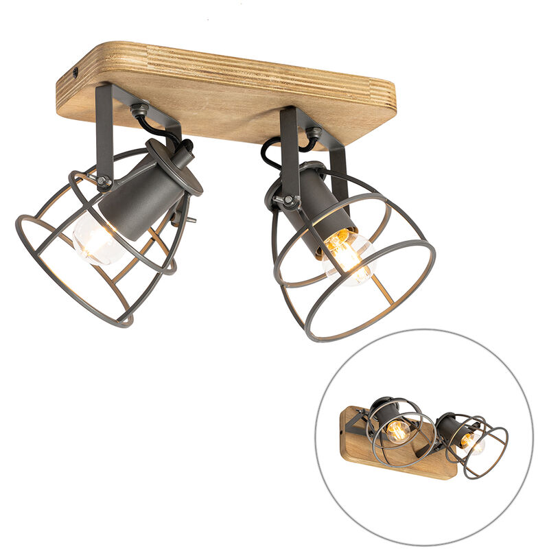 QAZQA Faretto industriale grigio scuro con legno orientabile a 2 luci - Arthur Il faretto da soffitto Arthur si inserisce perfettamente in un interno industriale. La lampada è realizzata in legno e acciaio ed è rifinita in marrone con grigio scuro. I 2 punti luce la rendono un vero e proprio creatore di atmosfera e sono orientabili! Il faretto da soffitto è largo 12,5 cm, lungo 27 cm e alto 20 cm. Non dimenticare di ordinare separatamente le lampadine con attacco E27. Queste non sono incluse. Arthur è dimmerabile, il dimmer non è incluso. Anche utile: puoi facilmente regolare i due punti luce di Arthur in direzioni diverse. Arthur è un vero vincitore. Con questo faretto da soffitto avrai sempre la giusta atmosfera in casa. Portalampada: E27 . Max 2 x 40 W, 230 V Adatto a: LED Voltaggio: 220V/230V IP Classe di protezione: [IP20] A prova di polvere Funzioni extra: Regolabile: Dimmer escluso,No, senza cavo e spina Lampadine exclusiva Il QAZQA Faretto industriale grigio scuro con legno