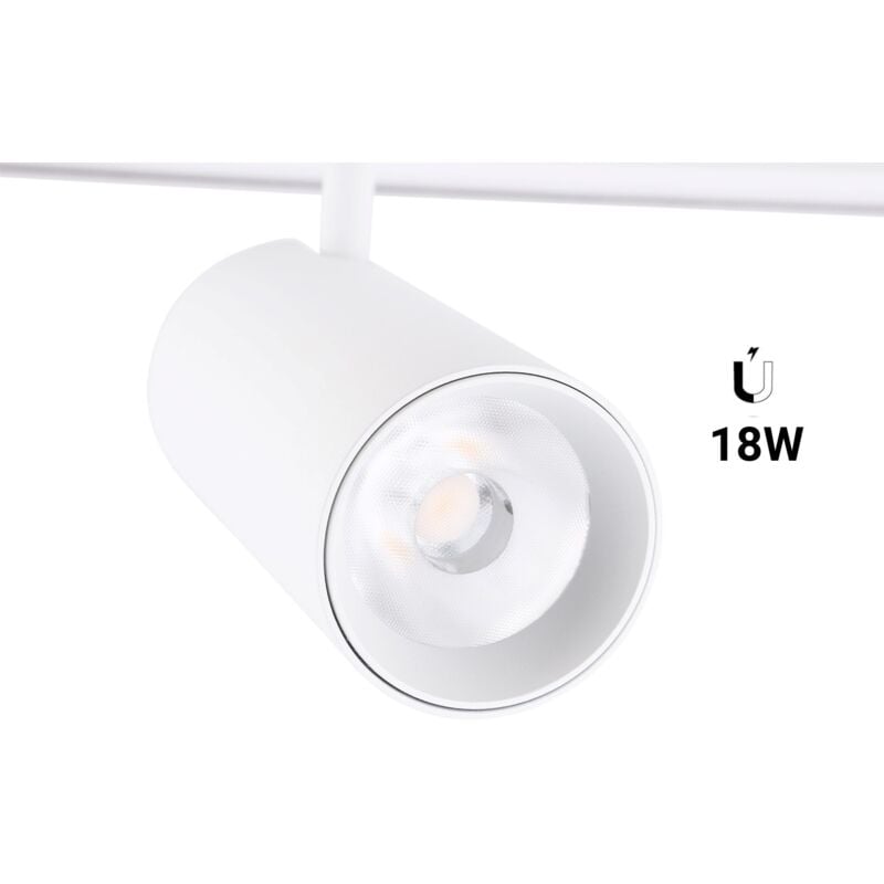 Il faretto LED a binario magnetico da 18W è un apparecchio all'avanguardia dal design moderno, perfetto per l'illuminazione d'accento. È molto facile da installare, premendo la base del prodotto sul binario senza bisogno di attrezzi. Con un angolo di rotazione orizzontale di 360° e verticale di 110°, consente di orientare il fascio luminoso nel punto desiderato. Inoltre, grazie all'elevato indice di resa cromatica (CRI>90), è in grado di visualizzare i colori con un'elevata fedeltà, simili a quelli della luce naturale. Disponibile in bianco e in due tonalità: bianco caldo e bianco neutro.