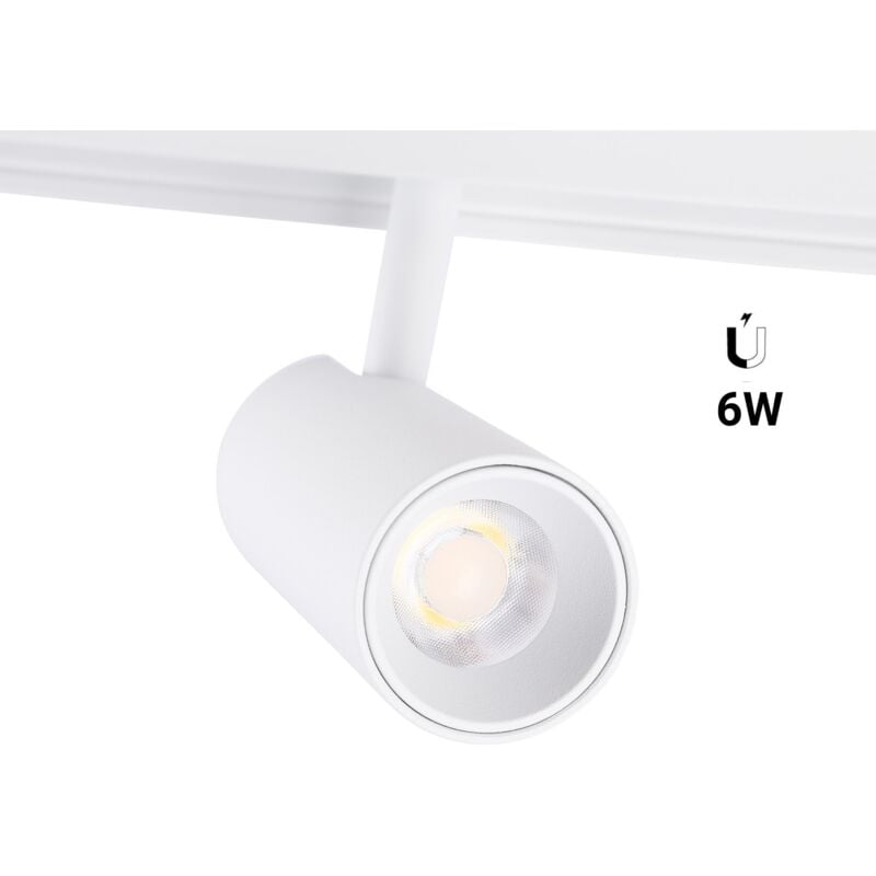 Il faretto LED a binario magnetico da 6W è un apparecchio all'avanguardia dal design moderno, perfetto per l'illuminazione d'accento. È molto facile da installare, premendo la base del prodotto sul binario senza bisogno di attrezzi. Con un angolo di rotazione orizzontale di 360° e verticale di 110°, consente di orientare il fascio luminoso nel punto desiderato. Inoltre, grazie all'elevato indice di resa cromatica (CRI>90), è in grado di visualizzare i colori con un'elevata fedeltà, simili a quelli della luce naturale. Disponibile in bianco e in due tonalità: bianco caldo e bianco neutro.