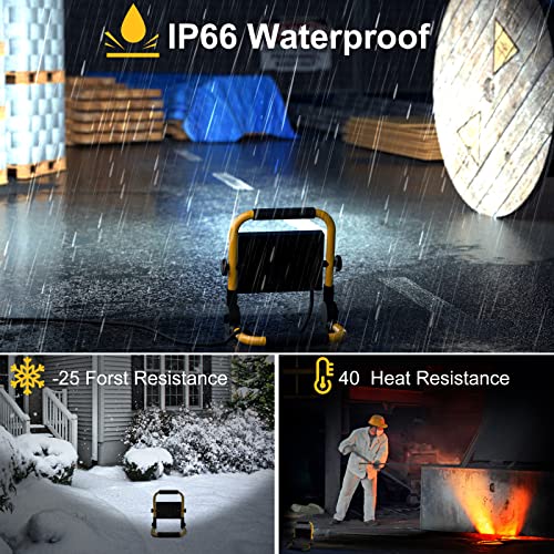 【IP66 Impermeabile】Questa luce da lavoro è IP66 resistente alla polvere e all'acqua. L'alloggiamento sigillato in un unico pezzo della lampada per esterni resiste a pioggia, nevischio o neve. La luce da cantiere a LED può essere utilizzata per la pesca, manutenzione, soccorso di emergenza, campeggio all'aperto, garage, cantiere, l'officina, ecc.