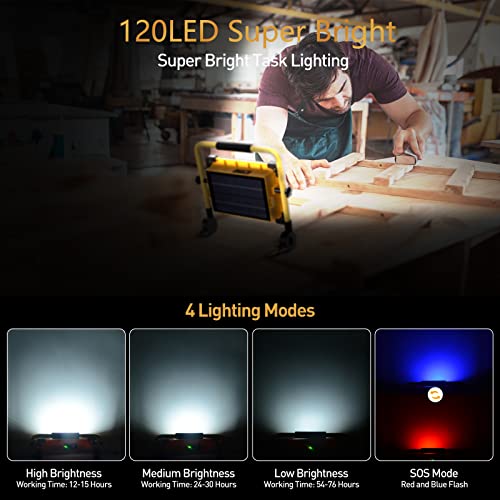 【120LED 100W Ultra Luminosi & Pieghevoli】 Il portatile faretto LED da cantiere 100W è dotato di 120 LED perline, 6000K bianco freddo ultra luminoso, garantisce la riparazione e un'illuminazione chiara del cantiere durante la notte. Luce da lavoro pieghevole portatile con supporto è facile da trasportare, adatta a tutti i casi.