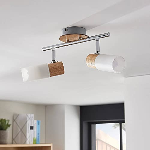 Faretto 'Christoph' dimmerabile (Country) colore Ocra, in Legno ad es. Cucina (2 luci, E14) di Lindby | Lampada da incasso, plafoniera, applique