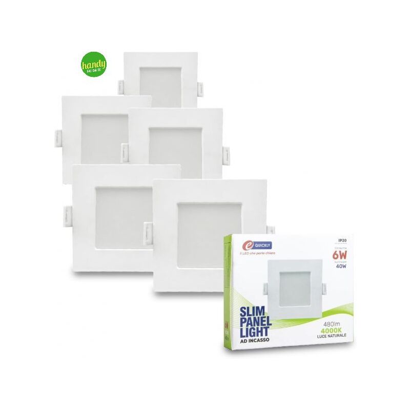 Faretto Led prodotto dal brand E-Quickly. Faretto da incasso quadro con potenza di 6W può generare 480 lumen, luce bianca naturale perfetta 4000K, l'efficienza della luce è uniforme e omogenea. Angolo di fascio luminoso di 120°. Il faretto corrisponde ad una lampadina a incandescenza convenzionale da 40 W. Grado di protezione IP20, ciò significa che è protetto contro l'ingresso di oggetti solidi più grandi di 12 mm Ø ma non è protetto dall'acqua.La confezione contiene un faretto.