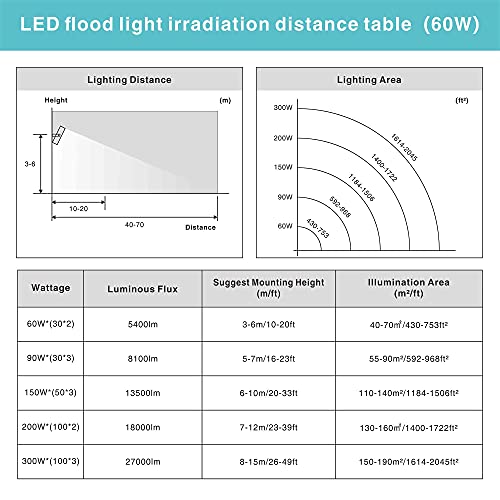 【Ti Libera dalle Preoccupazioni】Ha una durata di 50.000 ore, che è 10 volte più lunga rispetto alle tradizionali lampade a incandescenza. Il grado di impermeabilità IP65 consente di installarlo in ambienti umidi all'aperto, quindi può essere ampiamente usato come luce di cortile, luce di garage, luce di parcheggio, luce di stadio, luce di vialetto d'accesso, ecc.