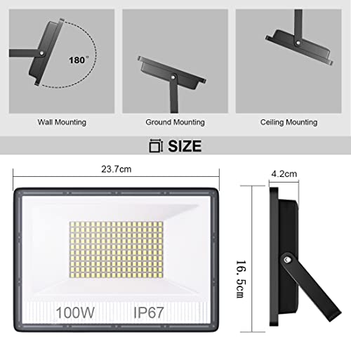 Faretto LED da Esterno 100W 2 Pezzi, IP67 Impermeabile Faro LED Esterno 10000LM Super Luminoso Faretti LED 7000K, Proiettore Esterno Bianco Freddo Luce di Sicurezza per Garage, Cortile, Terrazza