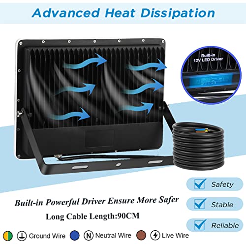 【IP67 Impermeabile & ampia applicazione】La faretti led può funzionare bene con un clima terribile, come pioggia, neve, freddo o calore, adatto a luoghi esterni o interni.Perfetto per cortile, giardino, laboratorio, prato, garage, strada, ingresso, muro, patio, stadio, campo di calcio, campi da tennis/basket o altre grandi aree