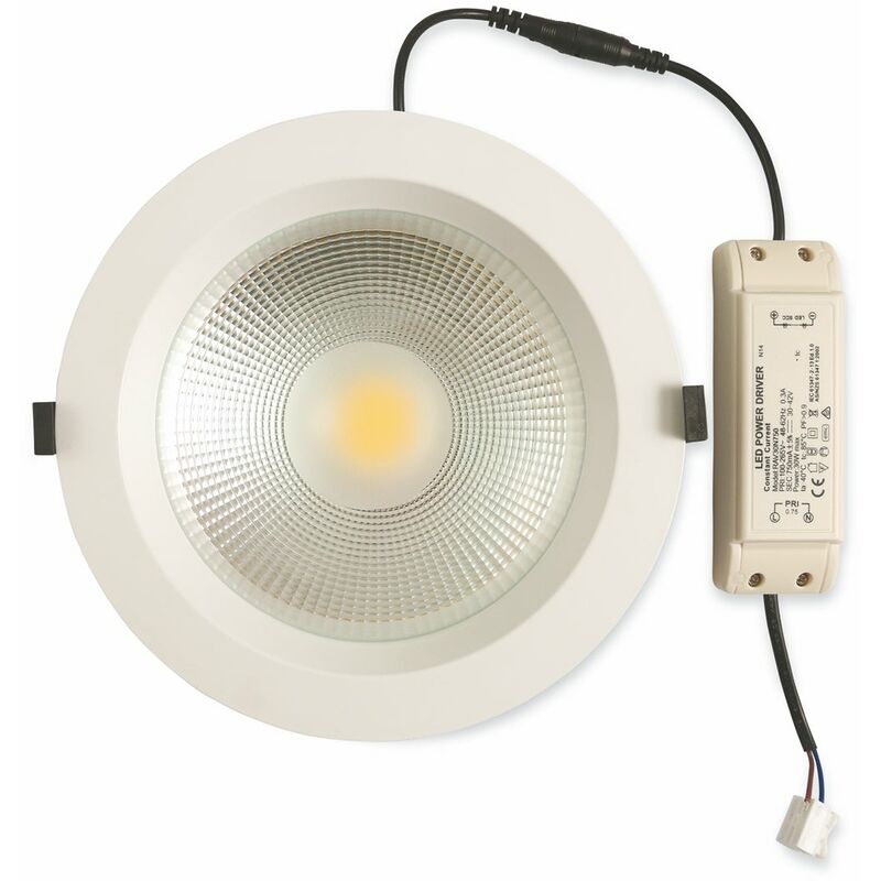 Faretto LED 30 W 2880 lm Caratteristiche Tecniche: Consumo effettivo: 30W Colore: Bianco Caldo 3000K Tensione operativa: 230V Luminosità: 2600 - 2880 lumen Angolo illuminazione: 120 gradi Misure: Ø 17 x h. 10 cm