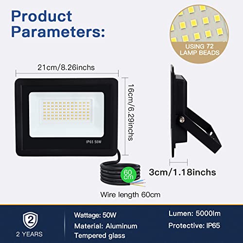 【Parametri del prodotto】: Potente Faretto LED esterno, potenza 50w, dimensioni L21xW3xH16cm, numero di sfere della lampada a LED 72, lumen super luminosi 5000LM, grado di impermeabilità IP65, lunghezza del cavo 60cm, staffa girevole regolabile, distanza di irradiazione e portata più ampia, adatta per l'illuminazione di interni ed esterni.