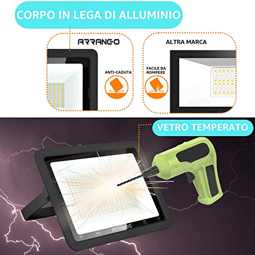 Faretto LED da Esterno, Proiettore LED da 200 W con Chip LUMILEDS, Cornice Nero, Luce Fredda 6500 K, 12000 lumen, Indice di Protezione IP65 (N200W, FR)