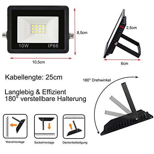 Faretto led da Esterno 10w Proiettore led da Esterno Faretto LED per esterni con cavo da 25cm, impermeabile IP66 per garage, giardino, campo sportivo, terrazza, cortile, 6500K bianco caldo 5 Pezzi