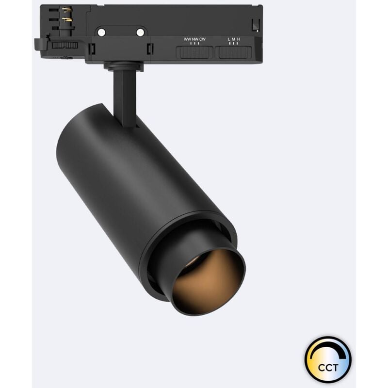 Il Faretto LED Fasano Nero 30W Cilindro Regolabile CCT No Flicker per Binario Trifase è la soluzione perfetta per mettere in risalto un elemento dell'ambiente con una luce intensa e di ottima qualità senza rinunciare al risparmio energetico. Caratteristiche del Faretto LED Fasano Nero 30W Cilindro Regolabile CCT No Flicker per Binario Trifase Integra una sorgente luminosa altamente efficiente che consente la regolazione TRIAC del flusso luminoso. Fornisce una luminosità diffusa su un angolo di 36°, che offre un fascio di luce compatto di alta qualità che riproduce i colori senza distorcerli, perfetto per integrare l'illuminazione generale dell'ambiente. Progettato per gli spazi interni, è realizzato con materiali di qualità come l'alluminio e può resistere a variazioni di temperatura comprese tra -25°C e 45°C. La sua installazione è molto semplice, grazie alla qualità dei componenti che integra, e soddisferà le esigenze degli utenti più esigenti. L'installazione avviene su una guida