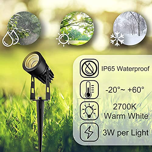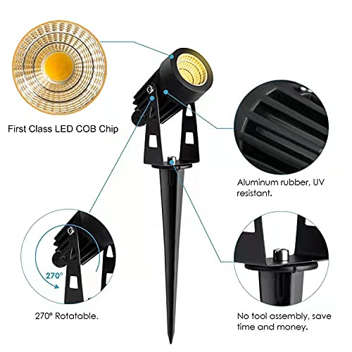 【65.6FT/20M Estensibile Faretti da Giardino】: Le nostre luci Spike da giardino hanno un cavo extra lungo per soddisfare le tue esigenze. 5 m/16,4 piedi dalla spina al primo faretto, 16,4 piedi/5 m di lunghezza tra i faretti, 65,6 piedi in totale. Puoi posizionarlo in modo flessibile dove vuoi;