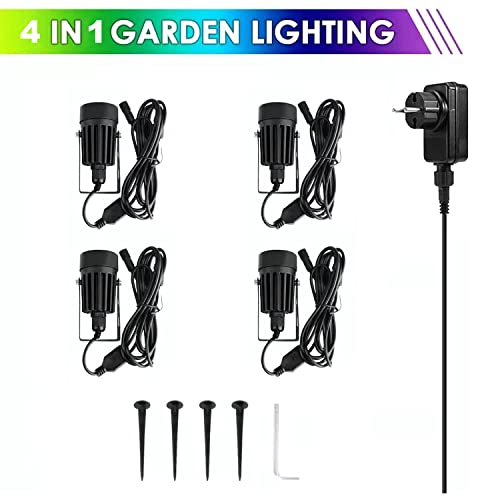 20M Faretto da Giardino con Picchetto 4 Pezzi Faretti a LED da Giardino Esterno con Picchetti Luci da Giardino Esterno da Terra Lampada da Giardino COB IP65 Impermeabile per Giardino, Prato, Muro