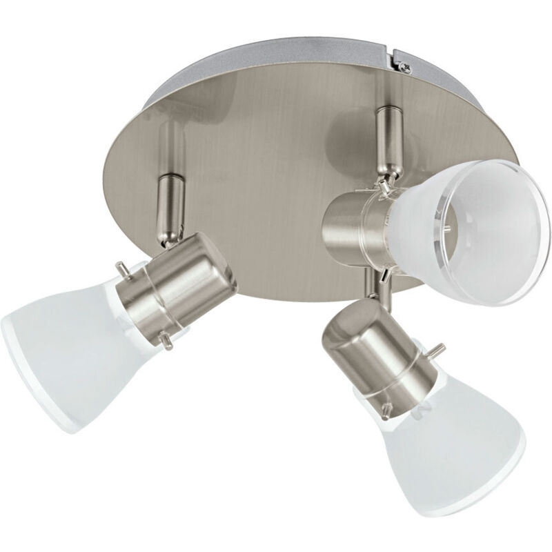 Descrizione Elegante plafoniera con faretti mobili. Questa lampada convince con i materiali principali di alta qualità acciaio e vetro. La superficie ha un'attraente finitura in nichel opaco e i vetri spot hanno una finitura satinata. Inoltre, la lampada è dotata della moderna tecnologia LED. Garantisci un'illuminazione ottimale e senza abbagliamento con questa applique. Dettagli • Produttore: Eglo • Tipo di lampada: Plafoniera • Montatura: Acciaio • Colore: Nichel opaco • Paralume: Vetro trasparente, finitura satinata • Grado di protezione: IP20 • Spot mobili • Dimensioni PxP in cm: 21x13 • Attacco: 3x LED • Lampadina inclusa: Sì • Potenza lampadina: 3x 5 watt • Flusso luminoso: 1500 lumen (3x 500lm) • Colore luce: bianco caldo • Tensione di esercizio: 220V to 240V • Le lampadine dell'apparecchio non possono essere sostituite. Dettagli lampadine • Tipo di sorgente luminosa: LED • Attacco: circuito LED • Flusso luminoso: 500 lm (lumen) • Consumo energetico: 5 kWh/1000h • temperatura