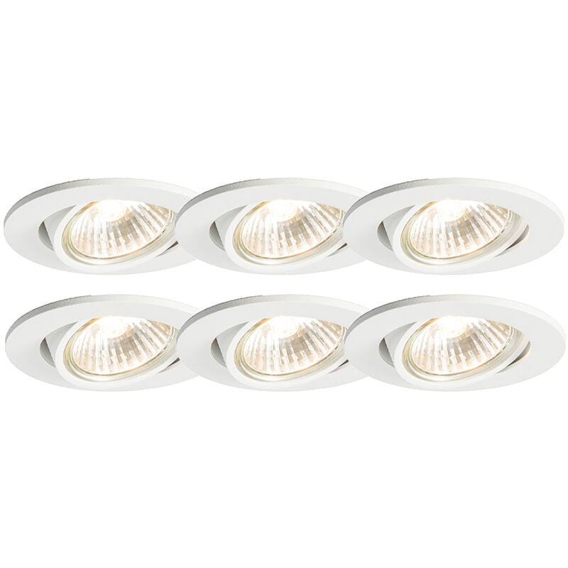 QAZQA Set di 6 faretti da incasso bianchi inclinabili - Cisco Questo set di 6 faretti incassati si adatta a qualsiasi ambiente grazie al suo design essenziale. Cisco ha un diametro di 8,9 cm e un'altezza di 8 cm. Le dimensioni di installazione: una profondità di 8 cm e un diametro di 7,5 cm. Poiché Cisco è realizzato in alluminio bianco, ha subito un aspetto elegante! Puoi completarlo con sei lampadine GU10 da un massimo di 50 watt. Una bella caratteristica aggiuntiva di questo faretto incassato è che è orientabile: in questo modo puoi illuminare il tuo spazio come preferisci! Cisco è anche dimmerabile (dimmer non incluso). Scegli uno stile moderno e scegli Cisco! Portalampada: GU10 . Max 1 x 50 W, 230 V Adatto a: LED Voltaggio: 220V/230V IP Classe di protezione: [IP20] A prova di polvere Funzioni extra: Regolabile: Dimmer escluso,No, senza cavo e spina Lampadine exclusiva Il QAZQA Set di 6 faretti da incasso bianchi inclinabili - Cisco è Bianco. Gli spazi abitativi adatti per questa