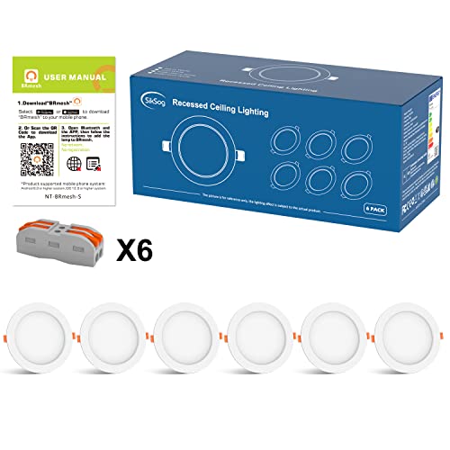Faretto LED da incasso intelligente Faretto LED piatto da 12 W,bianco caldo 2700 K + cambia colore RGB,dimmerabile tramite Bluetooth, plafoniera cambia colore per soggiorno,camera da lettoa (6 pezzi)