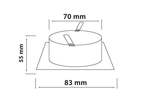 Dimensioni: dimensioni del foro: circa 70-75 mm. Profondità di montaggio: circa 80 mm (12 V) o 90 mm (230 V), dimensioni esterne del telaio: circa 83 mm.