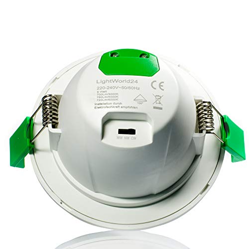 Faretto LED da incasso dimmerabile e CCT / sostituisci la lampadina alogena con un faretto LED da 9 W. Risparmia oltre l'80% sulla bolletta dell'illuminazione. Classe energetica A+, buona dissipazione del calore e lunga durata.