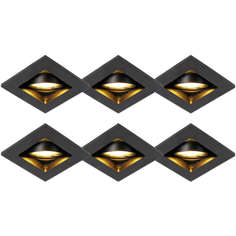 QAZQA Set di 6 faretti da incasso moderni neri orientabili - Qure Questo set nero di sei faretti a incasso si adatta perfettamente a un ambiente moderno, Qure è perfetto nel corridoio o in cucina! Con un valore IP di IP20, è adatto solo per uso interno. Un'ottima caratteristica aggiuntiva di questo faretto a incasso è che è orientabile. Quindi puoi illuminare gli angoli bui della tua casa dove vuoi! Il faretto è quadrato ma ha una dimensione di installazione rotonda, ideale per il montaggio. Le dimensioni di installazione di questo Qure: un diametro di 9 cm e una profondità di 10 cm. Le dimensioni complessive di questo faretto sono 10 cm di lunghezza e larghezza. Con sei lampadine GU10 da massimo 50 watt, puoi completare questo Qure. Se vuoi creare un'atmosfera accogliente la sera, puoi anche dimmerare questa lampada (dimmer non incluso). Illumina la tua casa con questo Qure! Portalampada: GU10 . Max 1 x 50 W, 230 V Adatto a: LED Voltaggio: 220V/230V IP Classe di protezione: [IP20] A