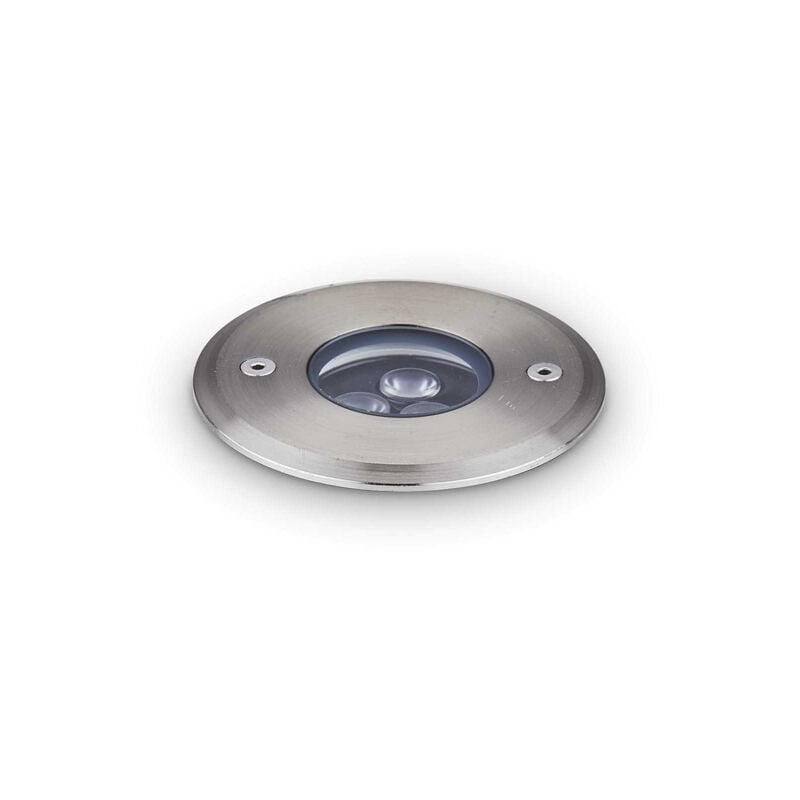 Collezione FLOOR DETTAGLI CHE ACCOMPAGNANO LE VOSTRE PASSEGGIATE Faretto ad Incasso fisso da esterni in alluminio pressofuso con ghiera rotonda diam. 9 cm, adatto per installazione a terra e a pavimento. Finitura in alluminio anodizzato con diffusore in vetro temprato extrachiaro. LED integrati 3 W raffreddati passivamente con ottica di 30°;