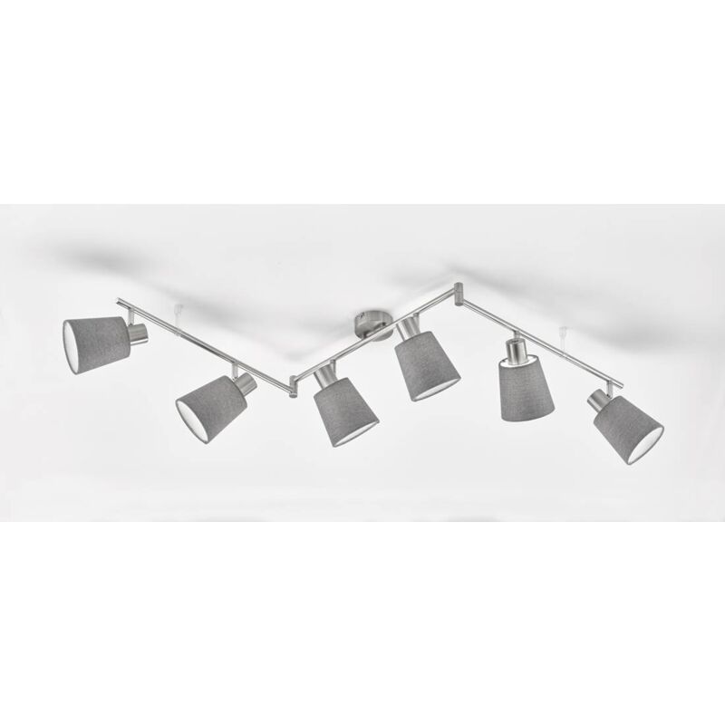 Faretto JEFF E14 6x10W metallo color nichel opaco, tessuto di lino grigio chiaro/bianco interno L:145cm L:11cm A:21cm dimmerabile Dimensioni in mm: Lunghezza: 1450, larghezza: 110, altezza: 210, Peso in kg: 1,35 Tipo di lampadina/ attacco: E14 Lampadine incluse: NO Potenza in Watt: 6x10 Grado di protezione: IP20 Dimmerabile: SÌ Interruttore: NO Materiale alloggiamento: Metallo Colore alloggiamento: nichel opaco Materiale vetro/paralume: tessuto di lino Colore vetro/paralume: interno grigio chiaro/bianco