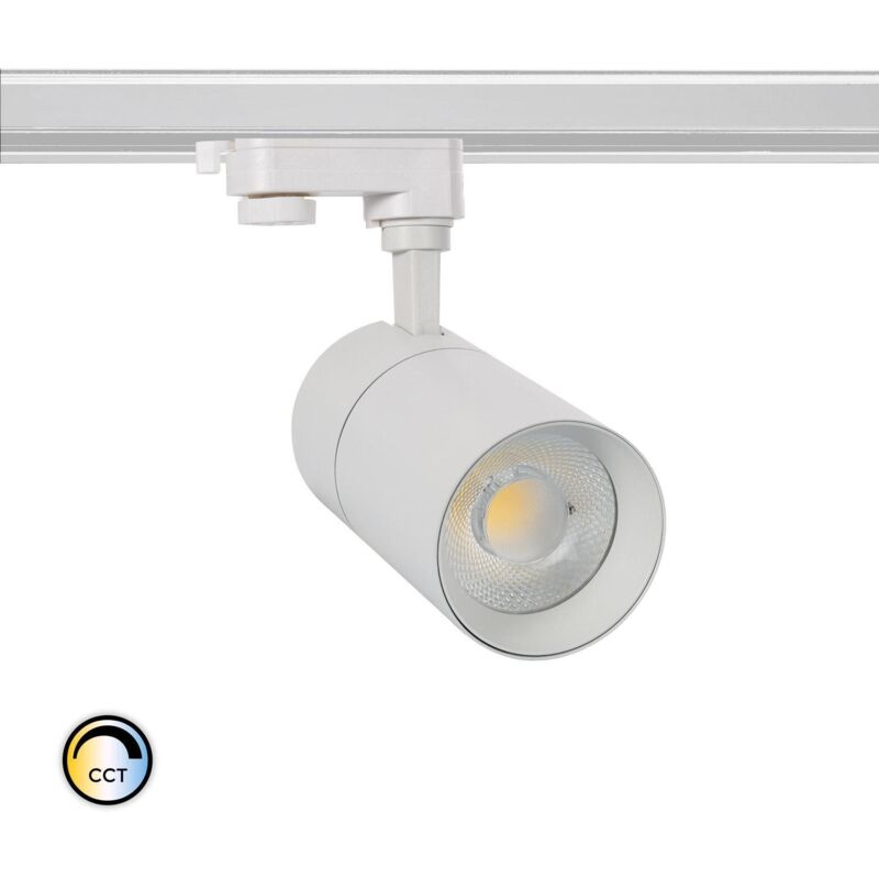Il Faretto LED New Mallet 30W Regolabile No Flicker CCT Selezionabile per Binario Trifase è la soluzione perfetta per mettere in risalto un elemento dell'ambiente con una luce intensa e di ottima qualità senza rinunciare al risparmio energetico. Caratteristiche del Faretto LED New Mallet 30W Regolabile No Flicker CCT Selezionabile per Binario Trifase La sorgente luminosa COB integrata emette una luminosità distribuita in un angolo di 36°, un fascio di luce compatto e di ottima qualità che riproduce i colori senza distorcerli, perfetto per completare l'illuminazione generale di qualunque ambiente. Pensato per spazi interni, è fabbricato con materiali di qualità, come l'alluminio, e può supportare oscillazioni di temperatura tra i -25°C e i 45°C. La sua installazione è molto semplice e si realizza su un binario trifase installato precedentemente. Questo faretto LED per binario trifase si presenta con una rifinitura moderna in bianco e nero. La sua installazione a binario è facile e