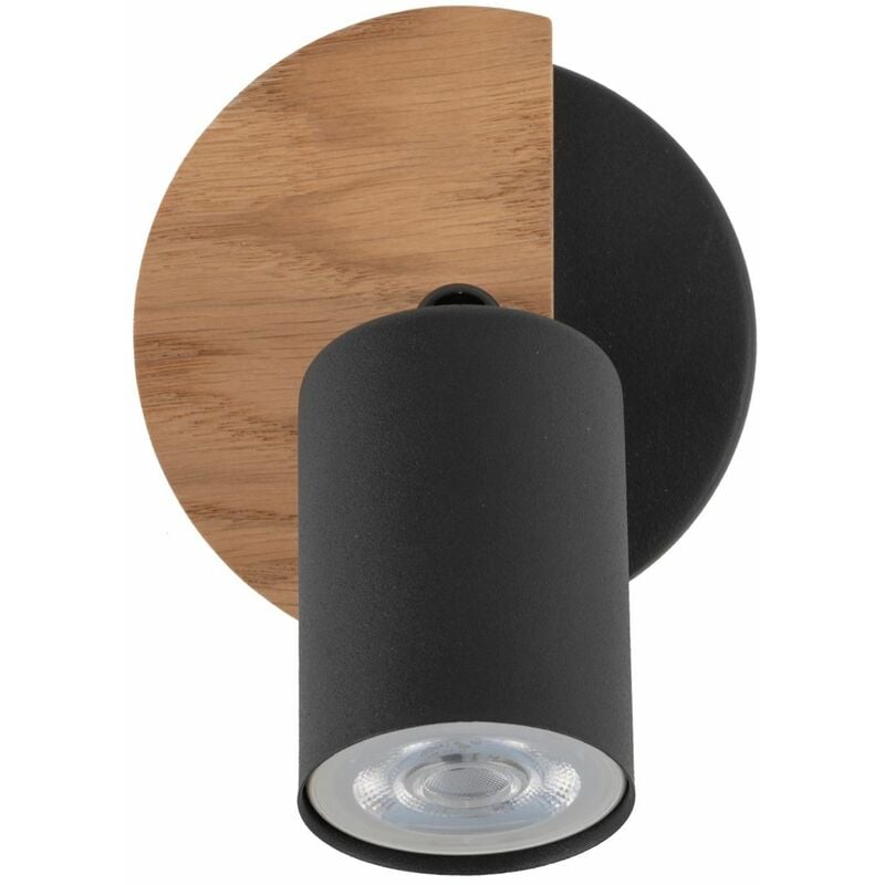 Dettagli del prodotto Materiale: Metallo, legno Dimensioni: larghezza: 110 mm, altezza: 150 mm, profondità: 145 mm Attacco: 1x GU10 fino a. 10 W (nur für LED geeignet) Classe di protezione dagli spruzzi: IP20 Colore: Nero, luce legno Peso: 300 grammo Altre immagini