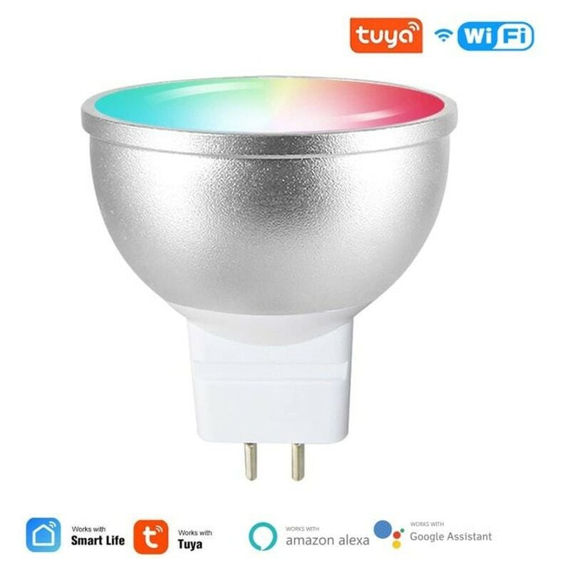 Tuya Faretto LED GU5.3 Smart WiFi 5W RGBCW 12V Lampadina LED MR16 con attacco GU5.3 da 5W di potenza disponibile con LED RGBW + luce bianca 3000K e LED RGBW + luce 6000K, si alimenta a 12V ed è compatibile con la maggior parte di portalampada GU5.3. Adatta da inserire in faretti da incasso, applique LED e tutti i dispositivi che hanno l'attacco GU5.3. Ideale per la cromoterapia di ambienti interni o per creare effetti di luce colorata in pub, negozi, pizzerie, bar. Il Tuo Smartphone come Telecomando Controllo a da applicazione Tuya Smart o Smart Life da qualsiasi parte del mondo utilizzando un telefono cellulare. 16 milioni di Colori La lampadina Intelligente ha 16 milioni di colori per voi da scegliere, crea il tuo ambiente perfetto. La temperatura del colore può essere regolata in continuo tra 2.700 K (luce bianca calda rilassante) e 6.500 K (luce bianca diurna da lavoro). Sincronizzazione Musicale Il Faretto Smart ha una funzione che può cambiare il colore in base al ritmo di
