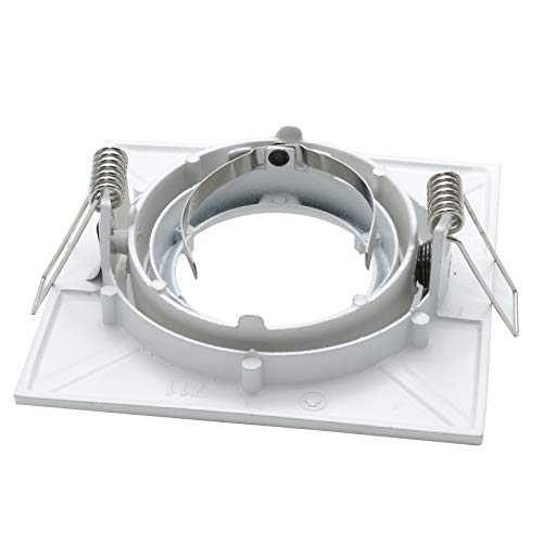 Faretto quadrato di colore bianco con diffusore orientabile dotato di alette a molla per l'incasso in soffitti di cartongesso realizzato in alluminio con sistema di sgancio a vite per cambiare la lampada senza rovinare il cartongesso