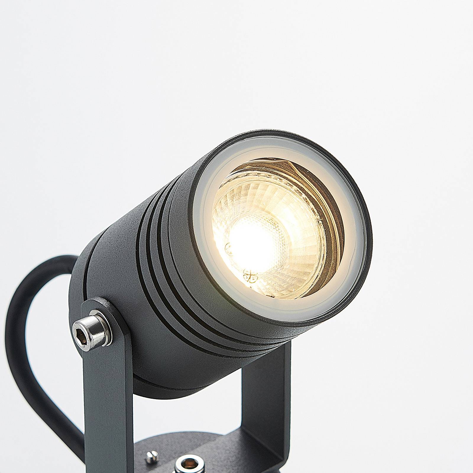 Faretto da pavimento, applique o plafoniera: il faretto da parete per esterni Galina si adatta in modo particolarmente flessibile alle condizioni del luogo. L'apparecchio colpisce anche per il suo design contemporaneo ma classico, basato su un corpo lampada cilindrico in grigio scuro, da cui partono due barre che collegano la lampada alla staffa. Anche quest'ultima è realizzata in alluminio pressofuso grigio scuro e presenta delle rientranze a forma di anello. Incorporata in un vetro temperato, la sorgente luminosa fatto chiaramente luce sulle aree selezionate. Il faretto da parete per esterni può essere dimmerabile esternamente se si utilizza una lampadina a incandescenza. Può anche essere orientato a seconda delle esigenze - Resistenza agli urti IK08
