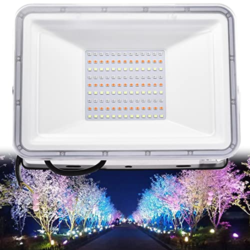 Faretto LED RGB 10W/20W/30W/50W/100W Proiettore da esterno con telecomando IP66 impermeabile Faretto da esterno dimmerabile colorato 16 colori 4 modalità per una festa in giardino all'aperto,100W