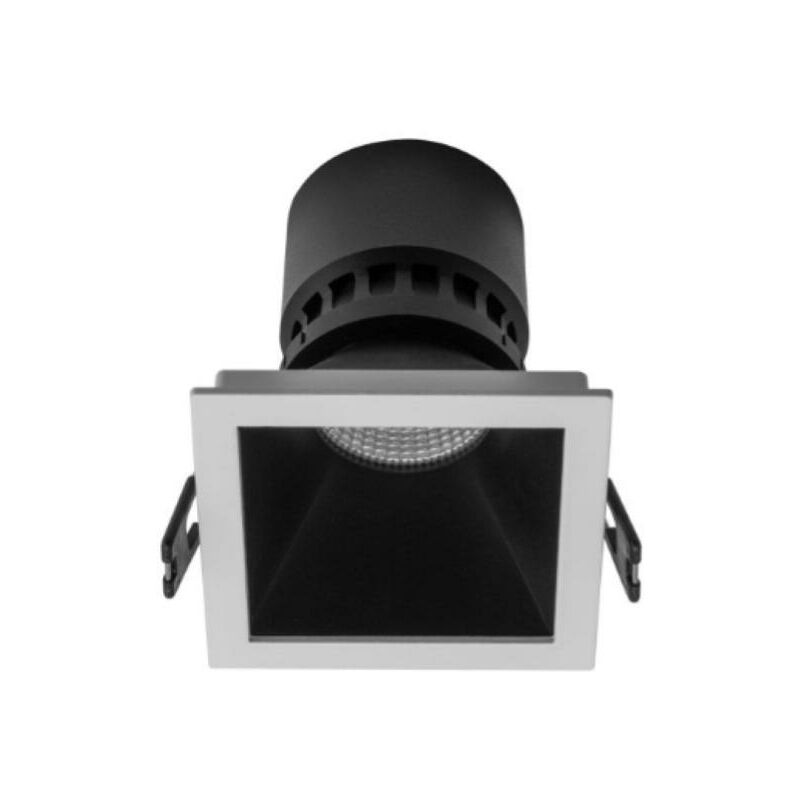 Faretto da incasso quadrato, telaio bianco opaco e anello decorativo nero opaco, per lampadine a LED, con attacco GU10 o per moduli a LED XCOMBO CM10, CM11 e CM12. Tipologia di prodotto: Apparecchio da incasso Corpo/struttura: Corpo in pressofusione di alluminio, verniciato a polveri bianco opaco. Sistema ottico: Anello decorativo in policarbonato bianco opaco, per limitare l'abbagliamento diretto (UGR