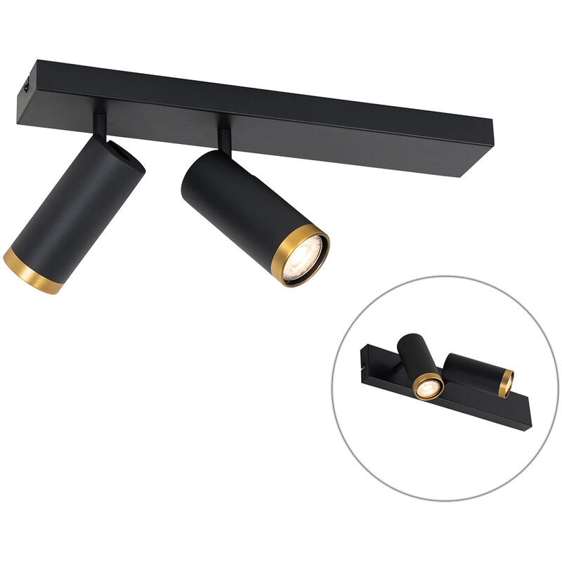 QAZQA Faretto moderno da soffitto nero con bronzo orientabile a 2 luci - Renna Scopri l'indispensabile faretto da soffitto a 2 luci Renna, una bella aggiunta a qualsiasi interno moderno. Questo faretto, realizzato in robusto acciaio e rifinito in un'elegante tonalità bronzo, brilla con 2 punti luce su un lato della piastra di montaggio. I caratteristici bordi in bronzo alle estremità dei faretti aggiungono un tocco sottile all'insieme. Con una lunghezza di 45 cm, una larghezza di 8 cm e un'altezza di 20 cm, Renna è un vero e proprio colpo d'occhio. Non dimenticare di aggiungere lampadine GU10 per completare il faretto. Grazie alla direzione regolabile dei faretti, Renna porta sempre la luce perfetta nella tua casa! Portalampada: GU10 . Max 2 x 35 W, 230 V Adatto a: LED Voltaggio: 220V/230V IP Classe di protezione: [IP20] A prova di polvere Funzioni extra: Regolabile: Dimmer escluso,No, senza cavo e spina Lampadine exclusiva Il QAZQA Faretto moderno da soffitto nero con bronzo