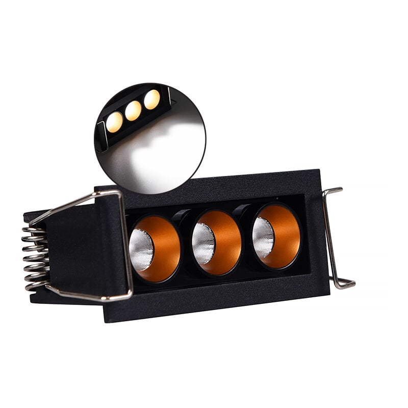 FARETTO LED RETTANGOLARE NERO DA INCASSO PER CONTROSOFFITTI 6W LUCE 6000K CON CONO DI PROIEZIONE IN BRONZO - ILLUMINAZIONE AD ALTA EFFICIENZA ENERGETICA Il Faretto LED Rettangolare in Alluminio Nero da Incasso per Controsoffitti rappresenta una soluzione illuminotecnica di punta per chi cerca un'illuminazione ad alta efficienza energetica combinata con un design elegante e moderno. Con una potenza di 6W e una temperatura di colore di 6000K, questo faretto emette una luce bianca fredda, ideale per creare ambienti luminosi e stimolanti, perfetti per uffici, spazi commerciali, cucine, bagni e qualsiasi area residenziale o commerciale che richieda un'illuminazione di precisione con un tocco di stile. Il corpo del faretto è realizzato in alluminio di alta qualità, finito in un sofisticato colore nero che si integra perfettamente in qualsiasi ambiente, offrendo un contrasto visivo accattivante quando abbinato a controsoffitti di diversi colori e materiali. Il cono di proiezione in colore