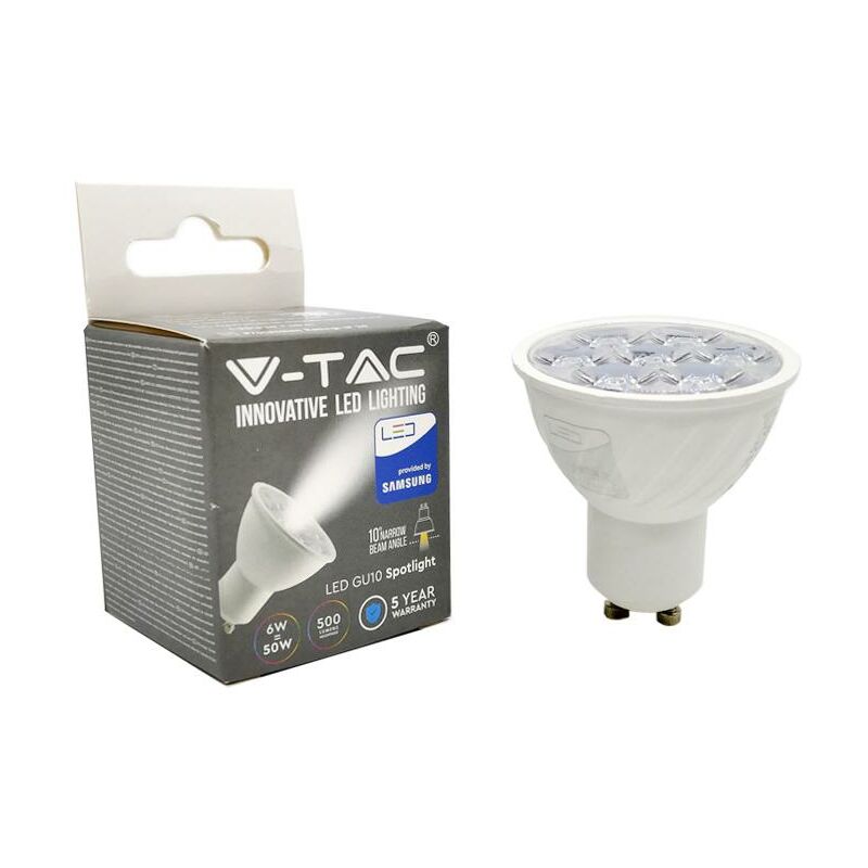 LED Faretto SAMSUNG Chip GU10 6W Ripple Plastica Lens Cover 10° 6400K SKU: 20028: VT: VT-249 Caratteristiche del prodotto 80% di consumo energetico in meno rispetto alle lampadine standard Lunga durata Nessuna emissione di radiazioni UV e radiazioni non ionizzanti Accensione immediata, nessun tempo di riscaldamento Bassa potenza termica Direttamente sostituibile alle lampade ad incandescenza tradizionali Installazione Aree Commerciali e Residenziali Hotel, Bar Stand espositivi Lampadari Allaperto, esclusivamente allinterno di apparecchi idonei. Specifiche tecniche Informazione generale Attacco GU10 Tipo Lampadina PAR16 Tipo LED SMD Vitamedia 30000 ore Dati elettrici Potenza 6W Tensione AC: 220-240V Frequenza 50Hz Fattore di potenza 50Hz Dati tecnici luce Fascio Luminoso 10° Colore della luce Bianco Temperatura di colore 6400K Flusso luminoso (lm) 500 lm Indice di resa cromatica Ra >80 Dettagli corpo Materiale Plastica Funzionalità IP Protezione IP20 Dimmerabile No Tempo innesco 100%