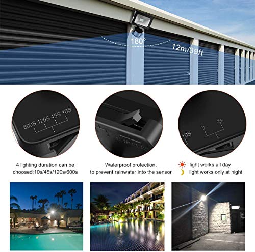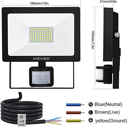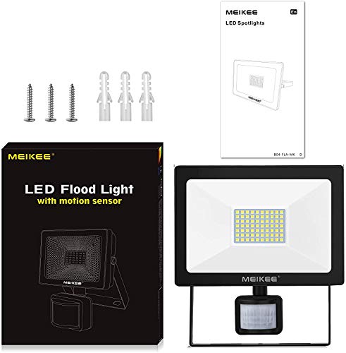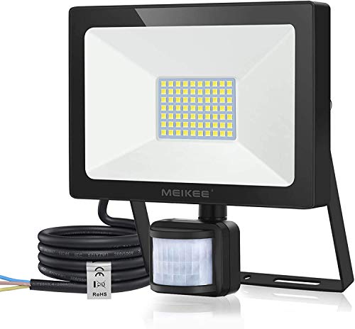 Faretto con Sensore di Movimento, 60W 5200LM Proiettore LED con Sensore MEIKEE Super Luminoso, IP66 Impermeabile Faretto LED da Esterno con Sensore di Movimento per Giardino, Garage, Gronda
