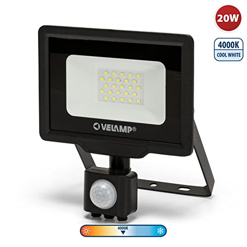 Faretto LED 20W con Sensore di Movimento Faro di Sicurezza da Esterno Impermeabile IP44, 1600 lumen, Luce Potente Bianco Naturale 4000K, Faretto da Esterno per Cortile, Garage, Magazzino, Giardino