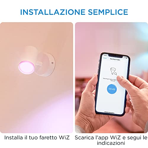 WiZ Faretto Smart LED Imageo, Luce Bianca o Colorata Dimmerabile, 3 x 5W, 3 punti luce, Wi-Fi, Bluetooth, Bianco