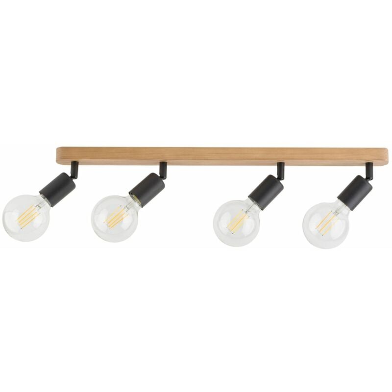 Dettagli del prodotto Materiale: Metallo, legno Dimensioni: larghezza: 150 mm, altezza: 130 mm, lunghezza: 760 mm Attacco: 4x E27 fino a. 15 W (nur für LED geeignet) Classe di protezione dagli spruzzi: IP20 Colore: Nero, luce legno Altre immagini