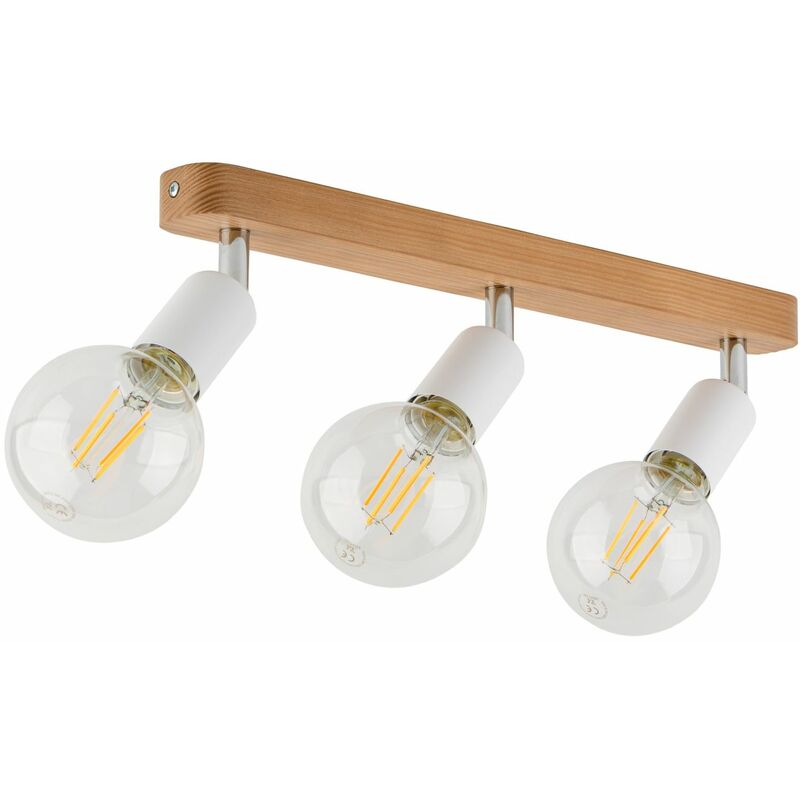 Dettagli del prodotto Materiale: Metallo, legno Dimensioni: larghezza: 150 mm, altezza: 130 mm, lunghezza: 510 mm Attacco: 3x E27 fino a. 15 W (nur für LED geeignet) Classe di protezione dagli spruzzi: IP20 Colore: Bianco, luce di legno Altre immagini