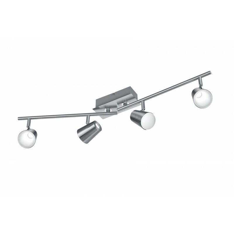 La lampada da soffitto NARCOS di Trio Lighting presenta una struttura in metallo nichel opaco composta da una base rettangolare, 2 bracci girevoli e 4 spot conici orientabili in tinta con la struttura e diffusori in acrilico bianco. Dotata di sorgente SMD LED integrato da 4 x 6 watt, resa luminosa 4 x 650 lumen, temperatura colore 3000k luce calda. Un elemento versatile dal design moderno, adatto a diversi tipi di ambienti. Grazie ai bracci girevoli ed ai faretti orientabili è possibile orientare il flusso luminoso in base le proprie esigenze, ad esempio in un corridoio, ingresso, zona living, ufficio o negozi di vario genere. Disponibile anche la versione di colore bianco opaco.