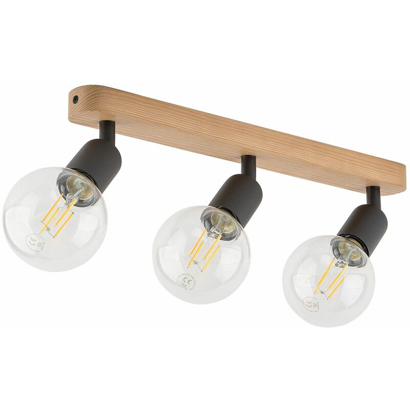 Dettagli del prodotto Materiale: Metallo, legno Dimensioni: larghezza: 150 mm, altezza: 130 mm, lunghezza: 510 mm Attacco: 3x E27 fino a. 15 W (nur für LED geeignet) Classe di protezione dagli spruzzi: IP20 Colore: Nero, luce legno Altre immagini