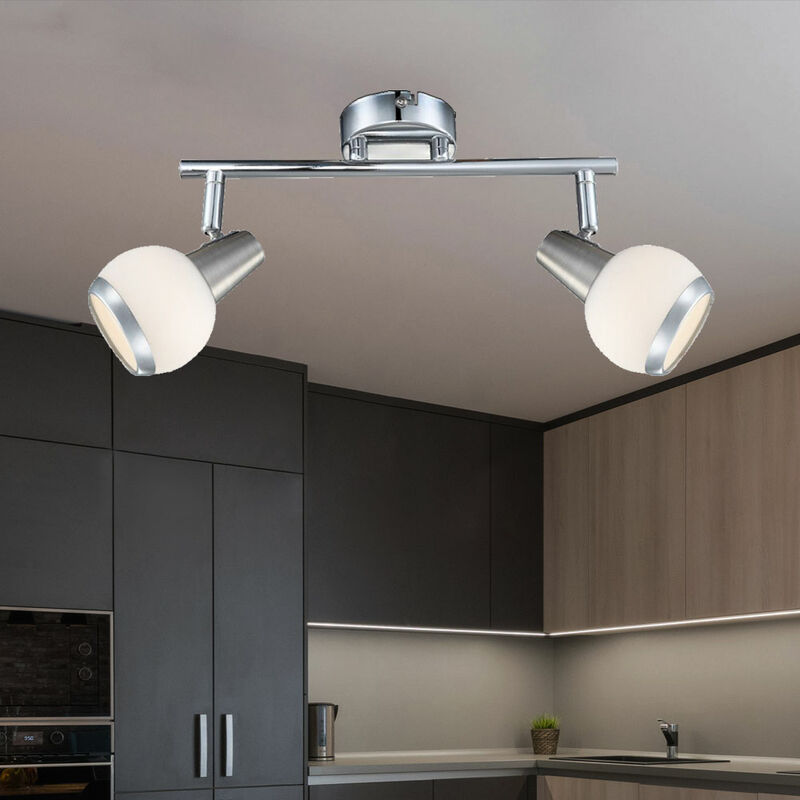 Descrizione Faretti da parete e soffitto di alta qualità per il soggiorno. Non importa in quale soggiorno, questa lampada fa una bella figura ovunque. Grazie ai faretti mobili, l'apparecchio può essere posizionato perfettamente. Rispetto ai normali apparecchi di illuminazione, i faretti a LED consumano solo una minima quantità di elettricità e sono in consumo anche sotto luci a risparmio energetico. Questo protegge l'ambiente e il tuo portafoglio. Sono incluse due lampade LED di alta qualità a risparmio energetico. Dettagli lampada • Tipo di apparecchio: faretti da parete e soffitto • Materiale: cromo, nichel opaco • Paralume: Vetro bianco con anello cromato • Spot mobili • Lunghezza x larghezza x altezza in cm: 30 x 8 x 15 • Prese: 2x E14 • lampadine incluse: si• lampadine: 2x 3 watt • flusso luminoso: 2x 300 lumen • luce colore: bianco caldo • Alimentazione: 220-240V, 50-60Hz dettagli lampada • Tipo di sorgente luminosa: LED • Attacco: E14 • Materiale: metallo, argento, vetro