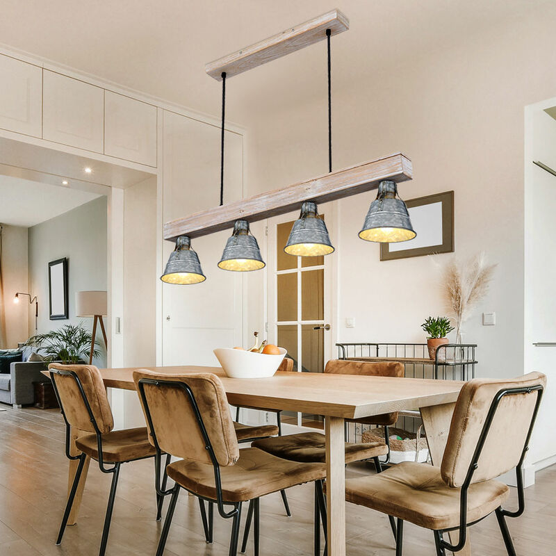 Descrizione La lampada a sospensione Günther I a quattro luci ha un design industriale alla moda. I paralumi sono fissati a un braccio dritto fisso di 85 cm e sono realizzati in zinco metallo. Dettagli luce • Tipologia lampada: plafoniera • Materiale: metallo • Colore: zinco• legno • lunghezza x larghezza x altezza in cm: 85x14x85 • prese: 4x E27 • Sorgente luminosa inclusa: Si • Potenza sorgente luminosa: 4x 6 Watt• Flusso luminoso: 4x 720 lumen• Colore luce: bianco caldo • Alimentazione: 220-240V, 50-60Hz Dettagli sorgente luminosa • Tipo di lampadina: LED • Attacco: E27 • Forma: Sfera • Materiale: Vetro • Colore: Trasparente • Flusso luminoso: 720 lm (Lumen) • Consumo energetico: 6 kWh/1000h • Temperatura colore: 2700 K (Kelvin) • Colore luce: bianco caldo • Resa cromatica (CRI): 80 • Consumo energetico nominale: 6 W (Watt ) • Durata nominale: 10.000 h (ore) • Cicli di commutazione: 40.000x • Tensione di esercizio: 220-240 V (volt) • Frequenza di rete: 50 Hz (hertz) • Contenuto di